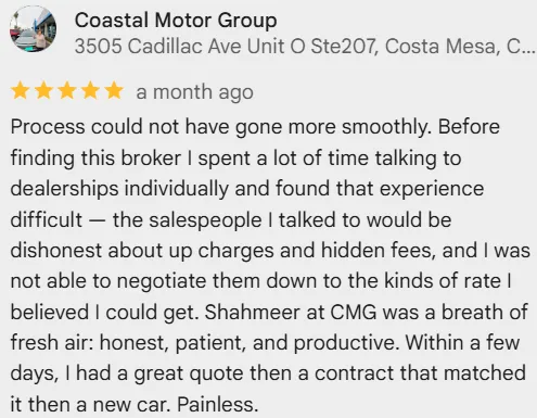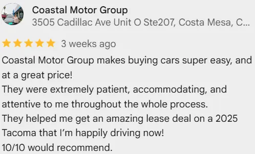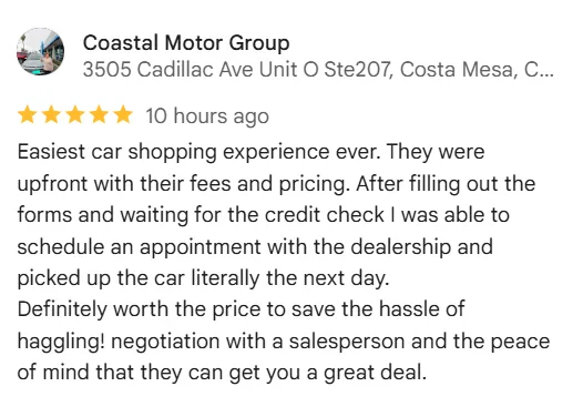 "Coastal Motor Group makes buying cars super easy, and at a great price"